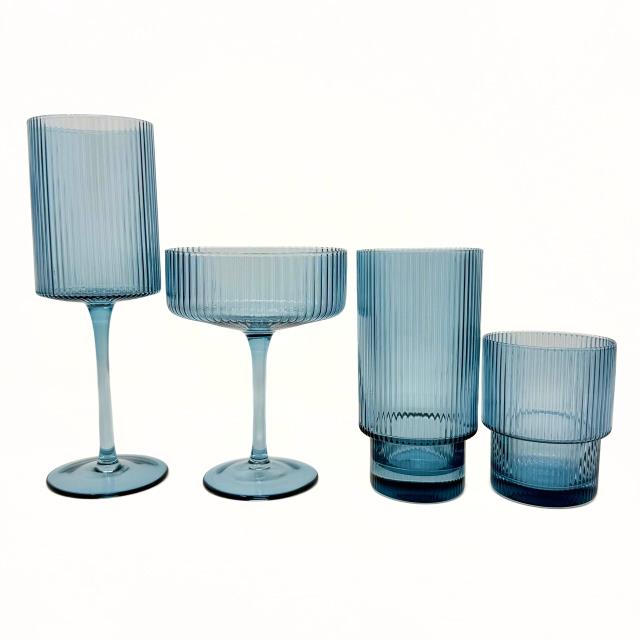 CAMBRIA RIBBED TUMBLER, OCEAN