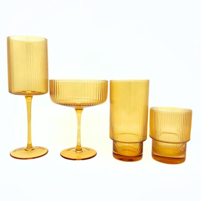 CAMBRIA RIBBED WINE GLASS, SUNSET